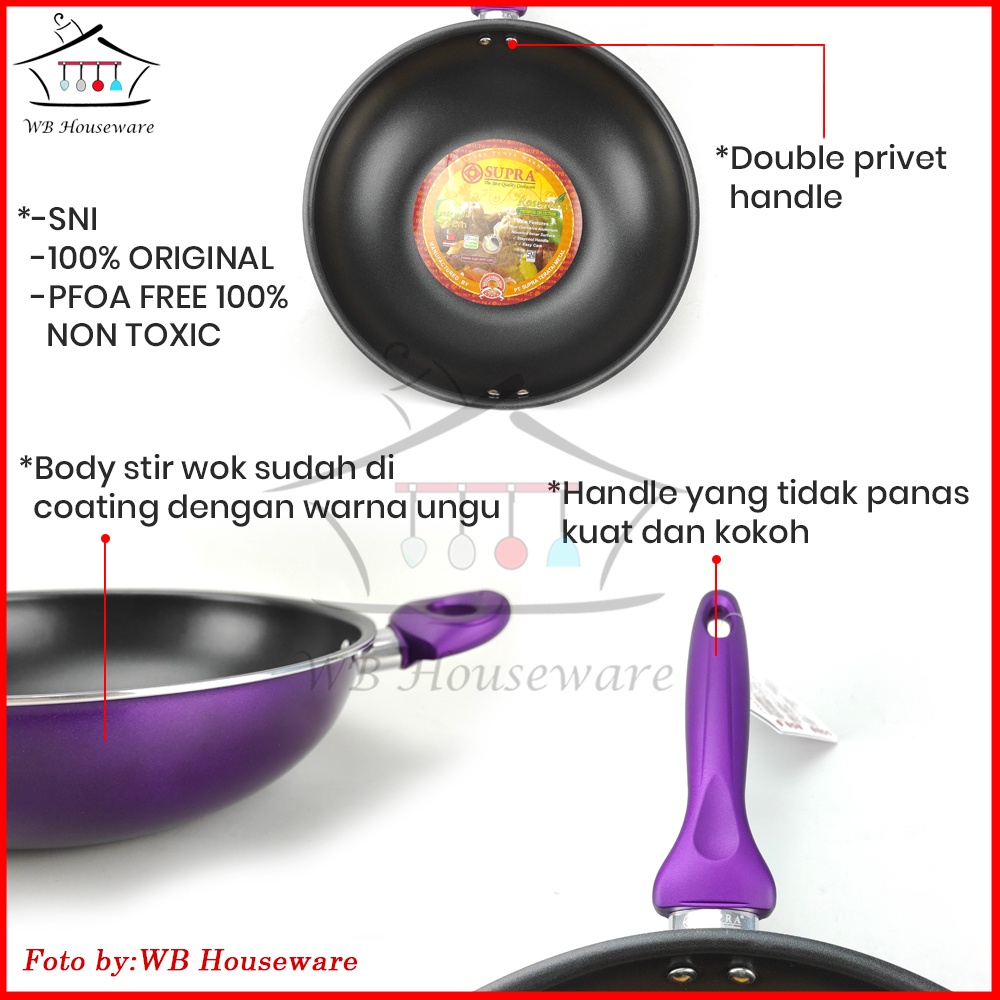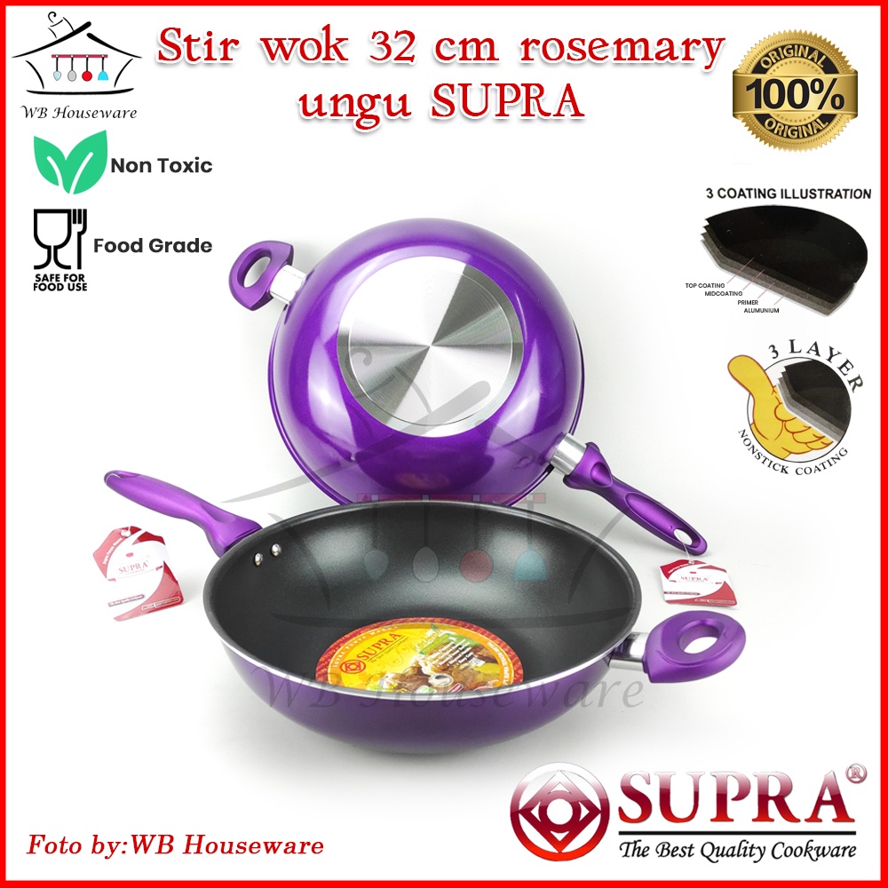 supra panci stir wok 32cm rosemary / wajan anti lengket penggorengan ungu