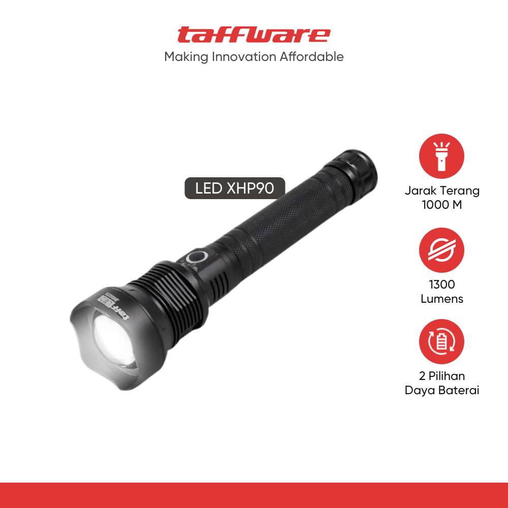 Taffled Senter Led Usb Rechargeable Flashlight Waterproof Xhp90 - Jhs522X