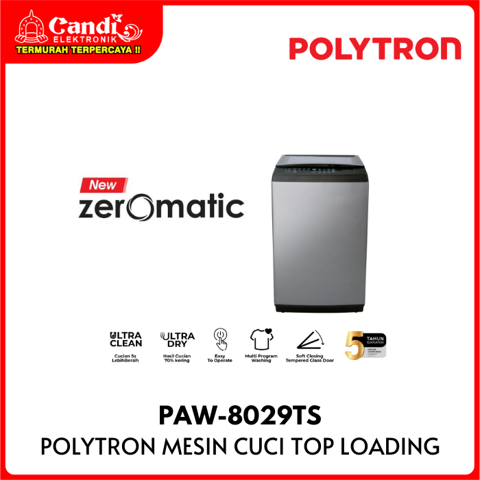 POLYTRON MESIN CUCI PAW8029TS 8 KG T0P LOADING 1 TABUNG ZEROMATIC LAGUNA HIJAB PAW8029TS PAW 8029TS
