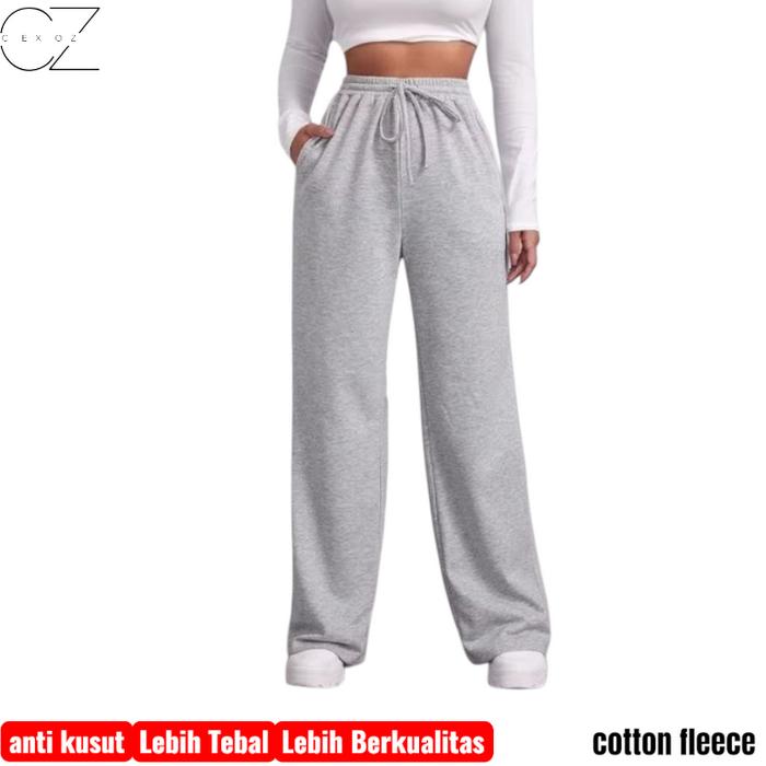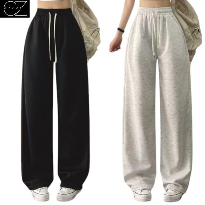 Cexoz - Celana Jogger Baggy Loose Pants Fit Pria Dan Wanita Basic Casual Kaki Lurus Kulot Karet Katun Lembut Nyaman Pan