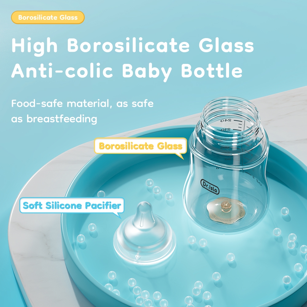 Dr.isla Dot Bayi Botol Susu Kaca Anti Kolik Botol BPA Free Wide Neck Botol Susu Bayi GB61
