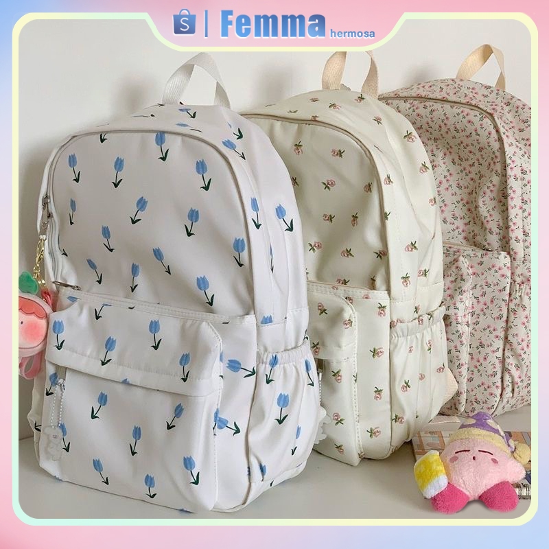 Import Tas Sekolah Backpack Tulip Wanita Fashion Korea Bag College Angin Bunga Kecil Ransel Laptop Siswa Sma Segar Tas B