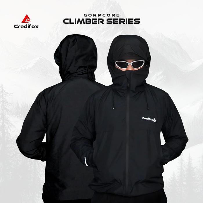Credifox Jaket Gunung Gorpcore Seri Climber Bahan Taslan Jn Premium - Jaket Outdoor Sport - Hitam, M (40Kg-55Kg)