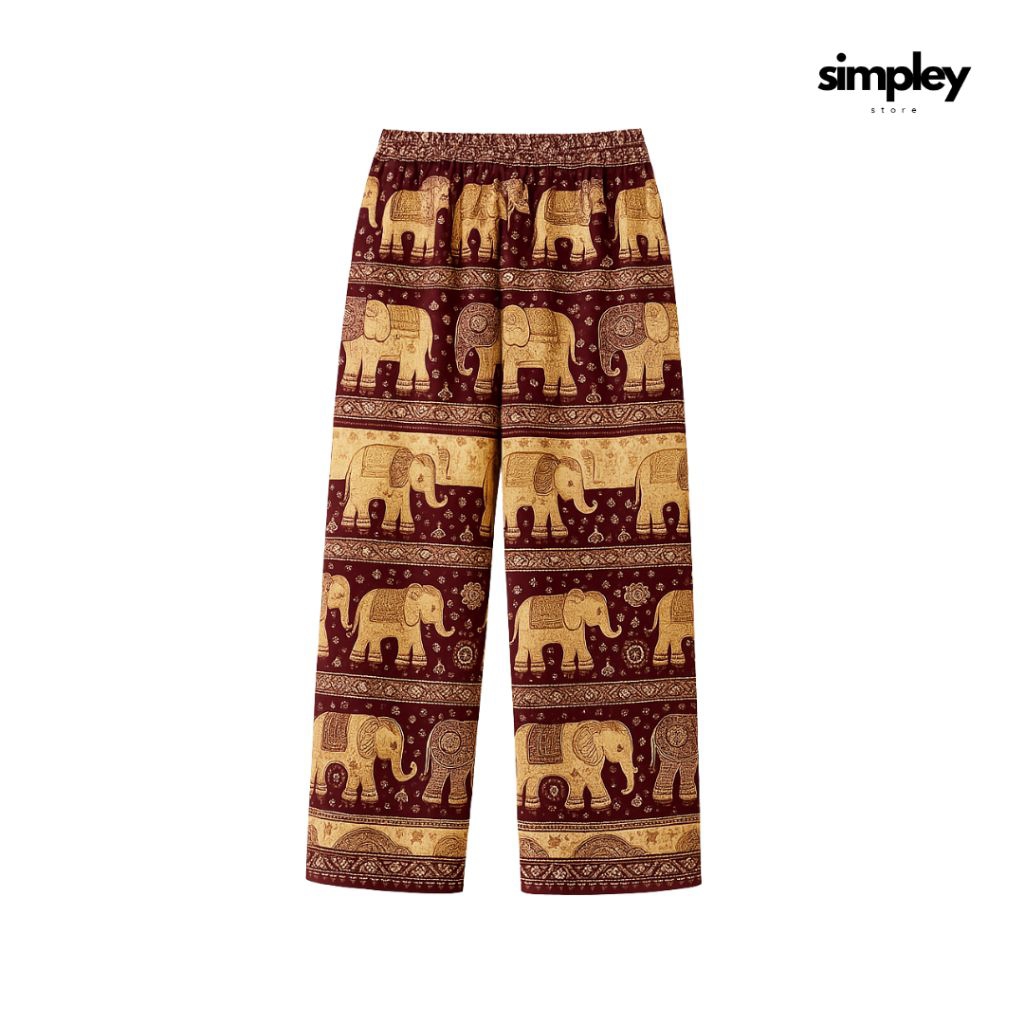 Celana Panjang Kulot Rayon Motif Gajah Thailand Viral | Celana Panjang Kulot Motif Gajah Kekinian