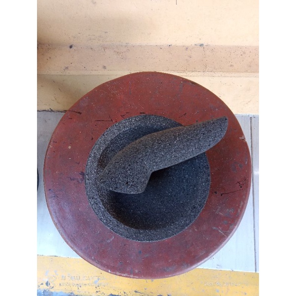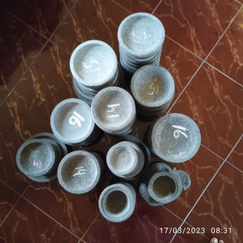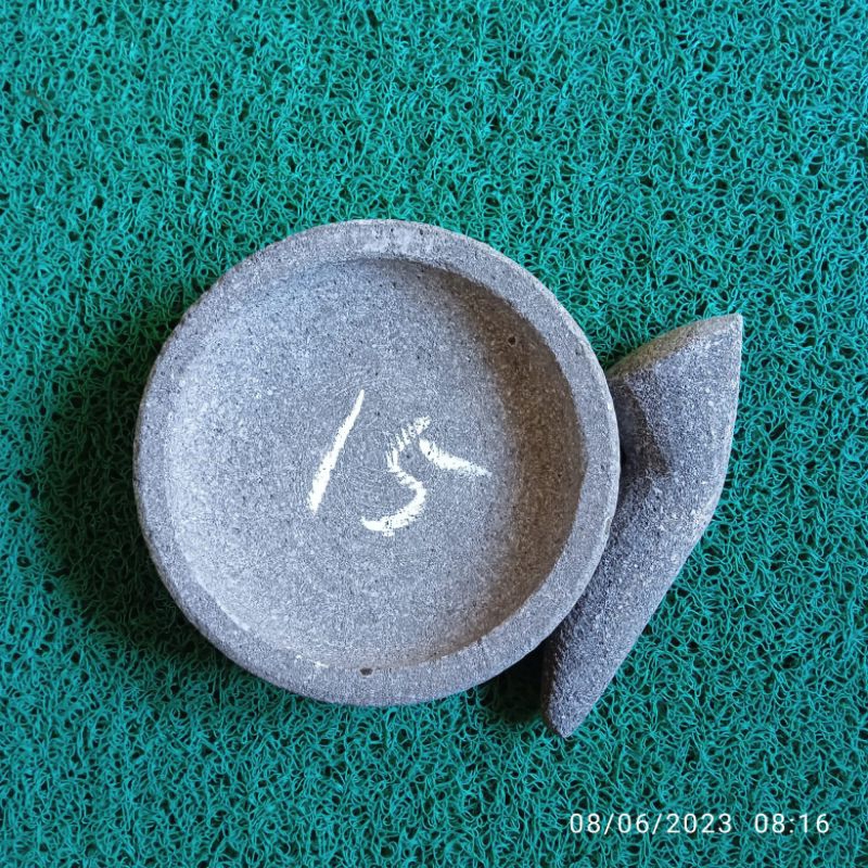 Cobek Bubut Bahan Batu Alam Asli Gunung Motif Bulat Tebal Tahan Lama