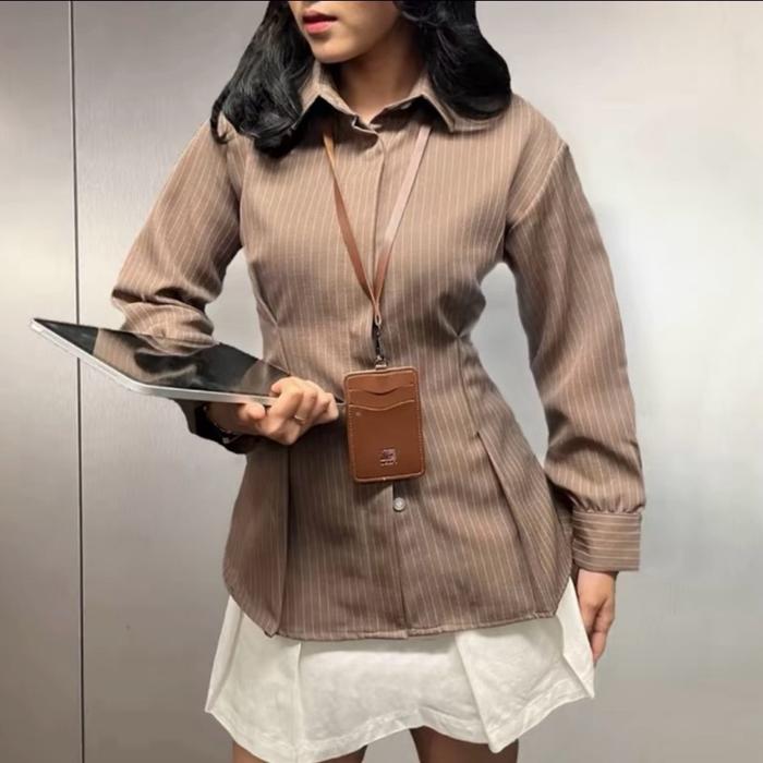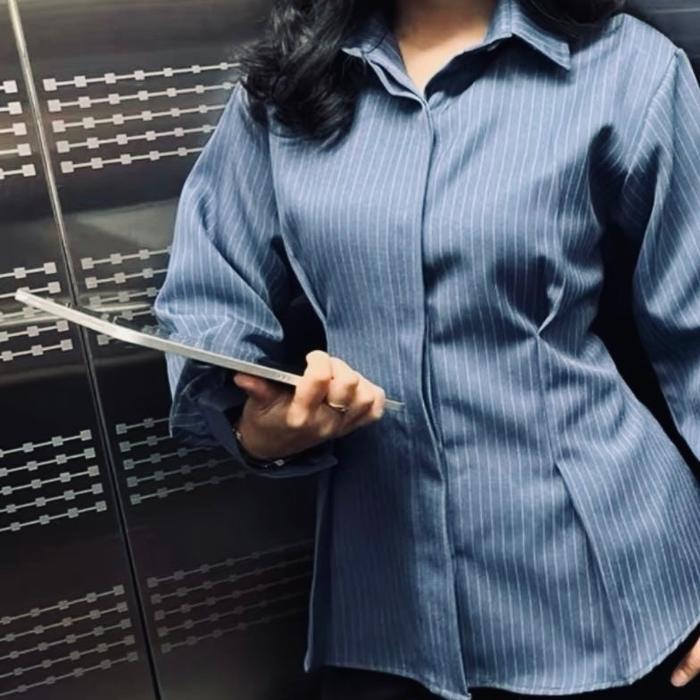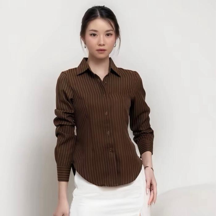 Safana Brand - Luna Stripe Fitted Shirt//Kemeja Wanita//Atasan Panjang Wanita Stripe Salur Basic Casual//Baju Cewek Semi