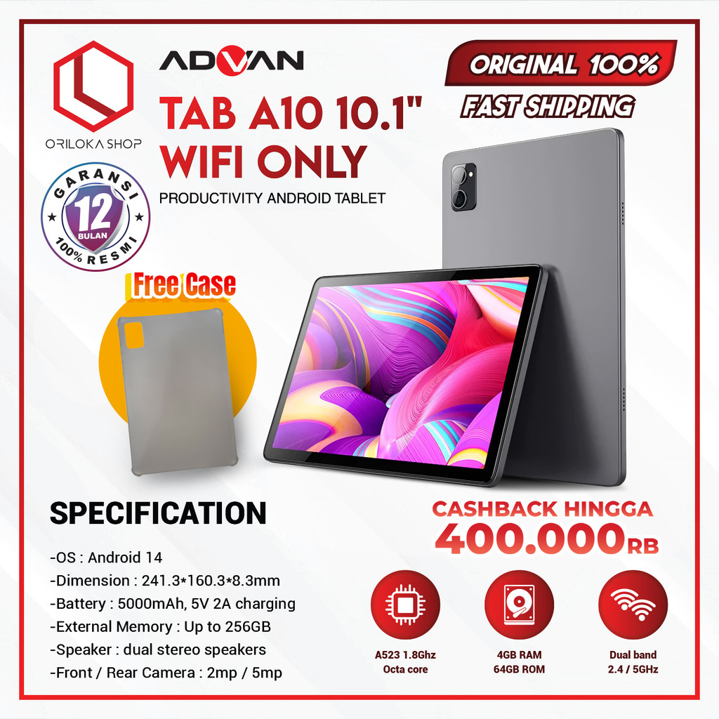 ADVAN TAB A10 Wifi Only 4GB/64GB | Layar 10.1” | Tablet Android 14 | Garansi Resmi