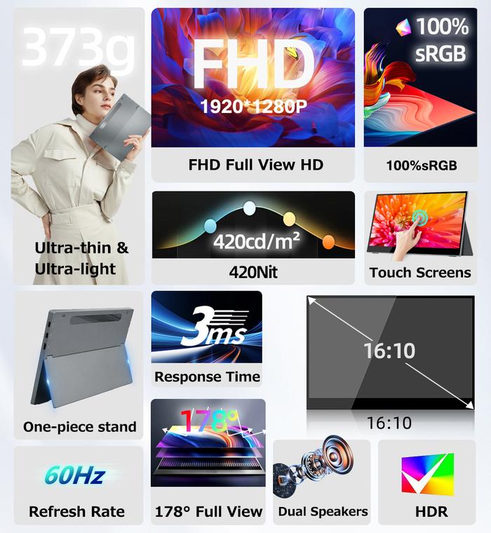 PORTABLE MONITOR BEEX 10.5" 1280P HDR ULTRALIGHT PORTABLE MONITOR TYPE C HDMI USB C - NON-TOUCH