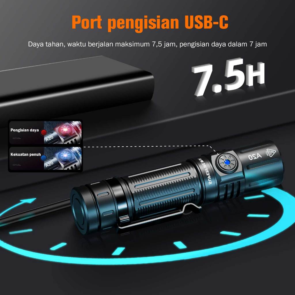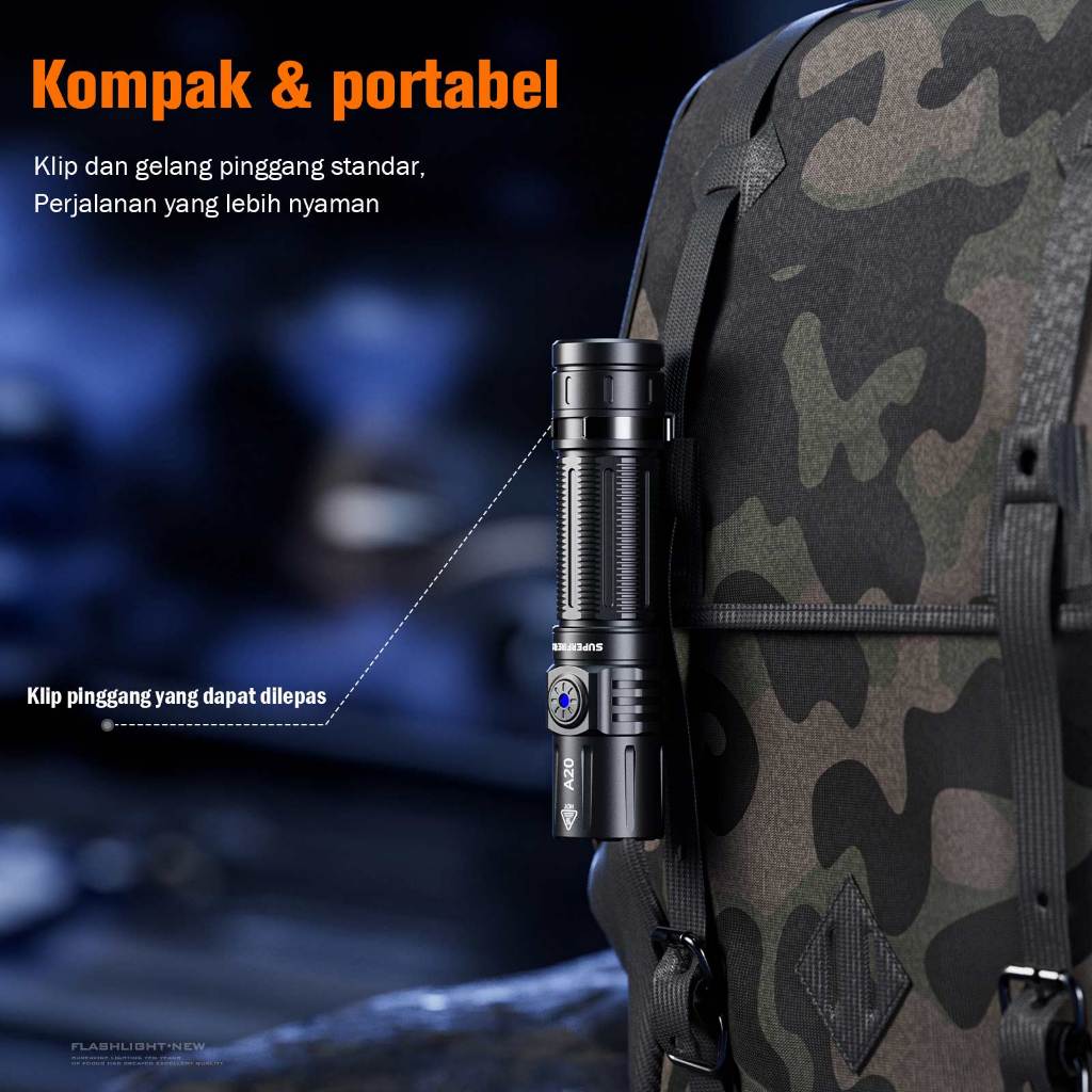 Senter Led Superfire A20 20W Daya Tinggi 2000 Lumens Super Terang Rechargeable Type-C Portable Tahan Air Untuk Camping P