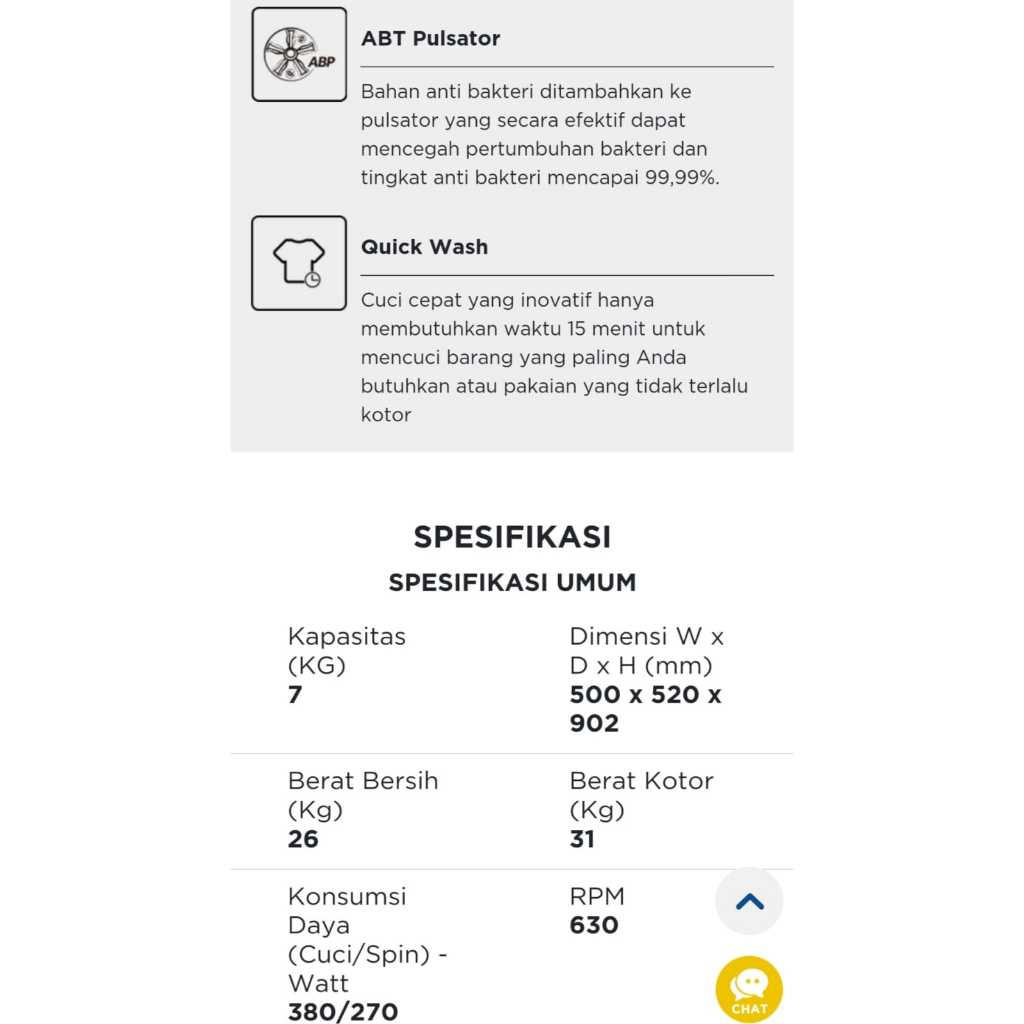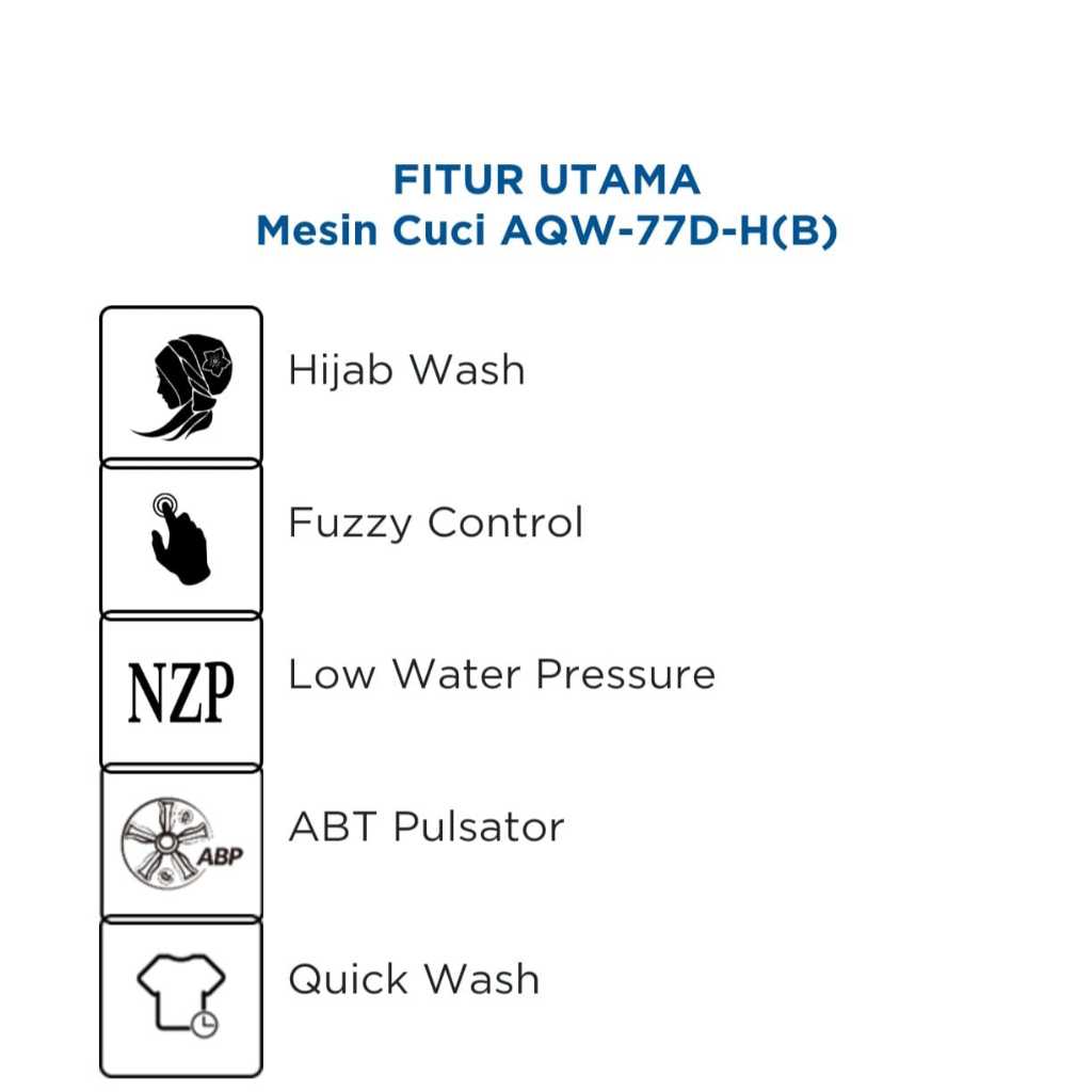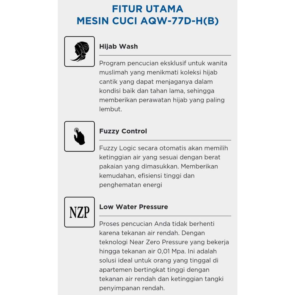 Mesin Cuci 1 Tabung Aqua Sanyo AQW77DH 7.5KG Hijab Mode Full otomatis