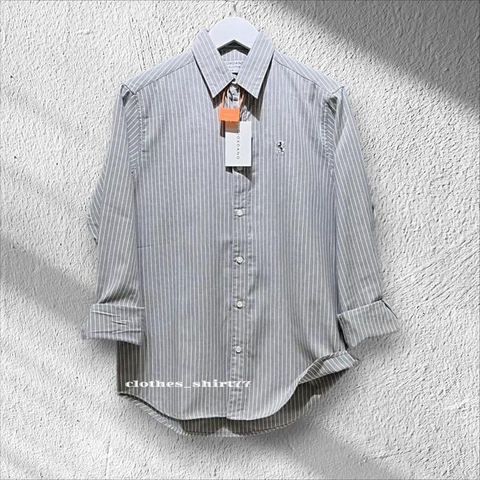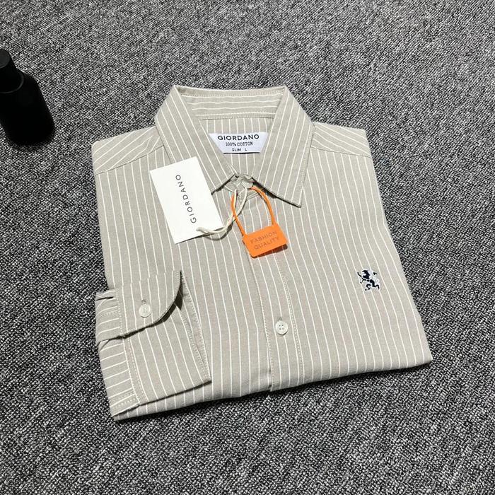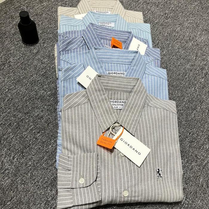 Kemeja Salur Giordano Lengan Panjang Premium Kemeja Lengan Panjang Slim Fit Baju Kemeja Garis Garis Unisex - Blue Shof,