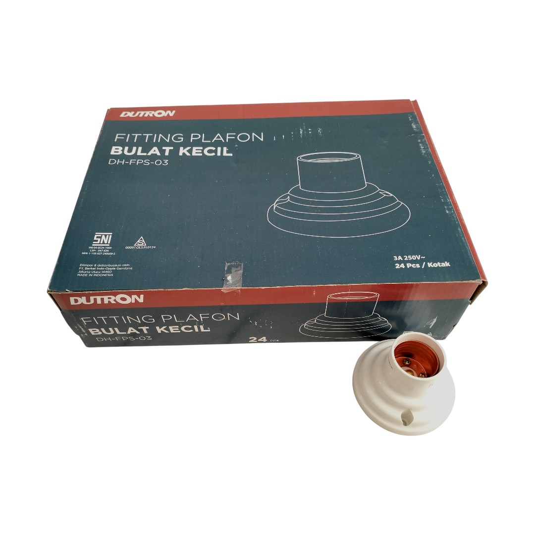 Fitting Plafon Bulat Kecil 3 Inch Dutron Putih DH FPS 03 HG Fiting Lampu E27 Atap Rumah Pin Kuningan