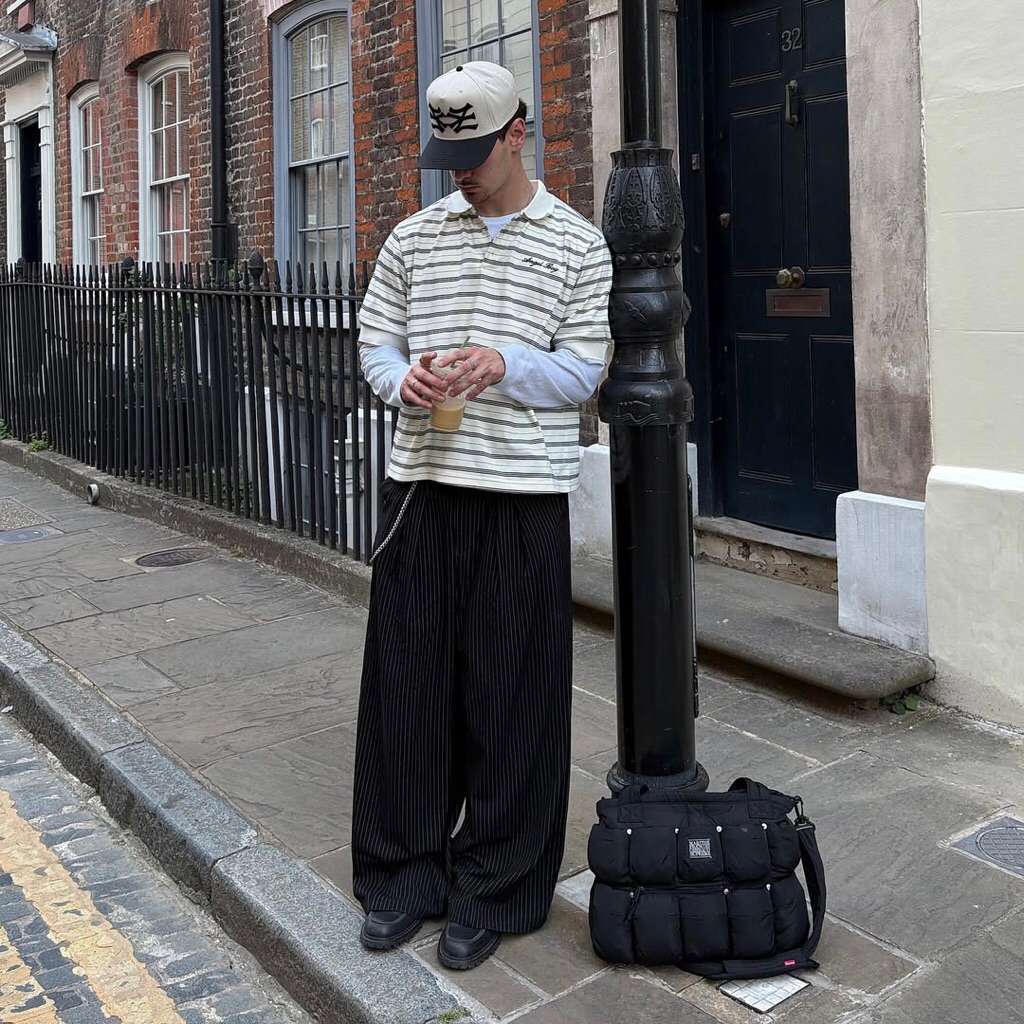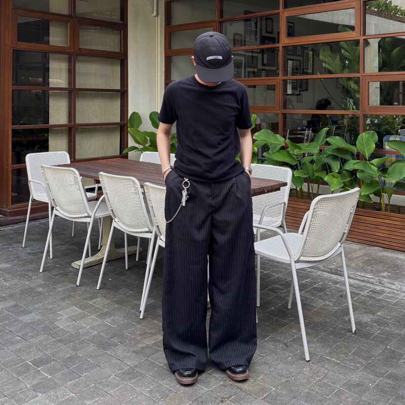 Garrison - Celana Baggy Garis-Garis Hitam Katun