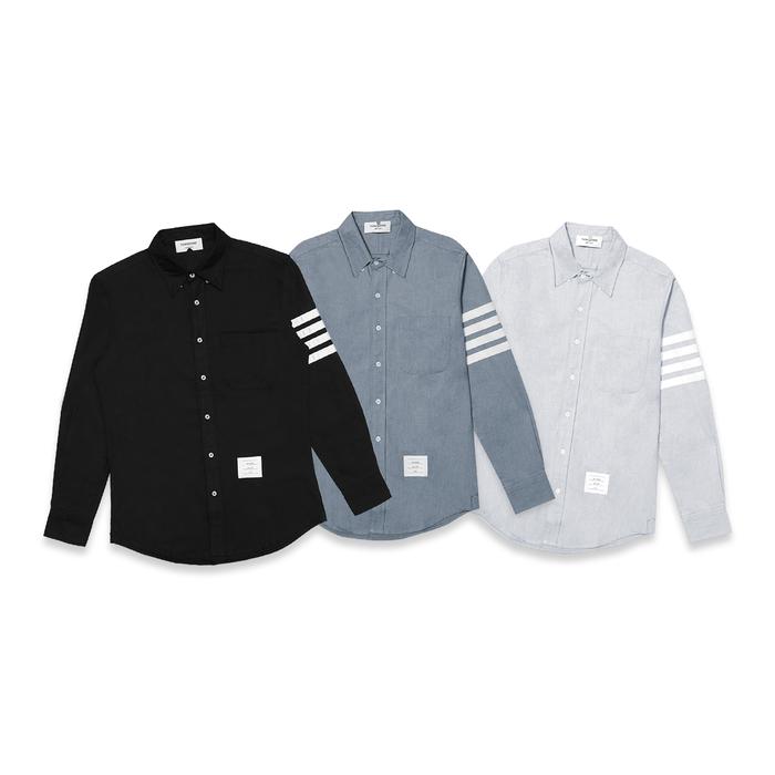 Tbn Oxford Bar Stripes Long Sleeve Shirt - Black, 0