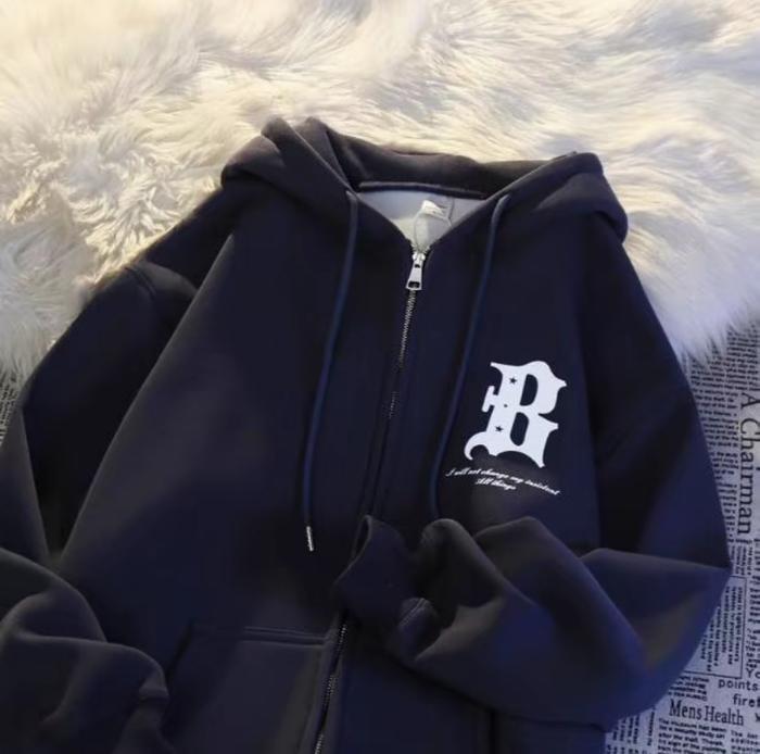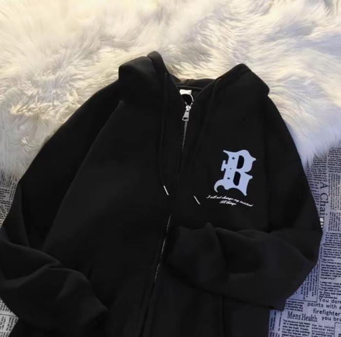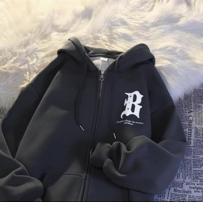 B Custom Hoodies Untuk Pria&Wanita-Zip Upstyle For Bold Looks-Sweatshirts Menswear Koreaname Cotton Casual Classic Fitte