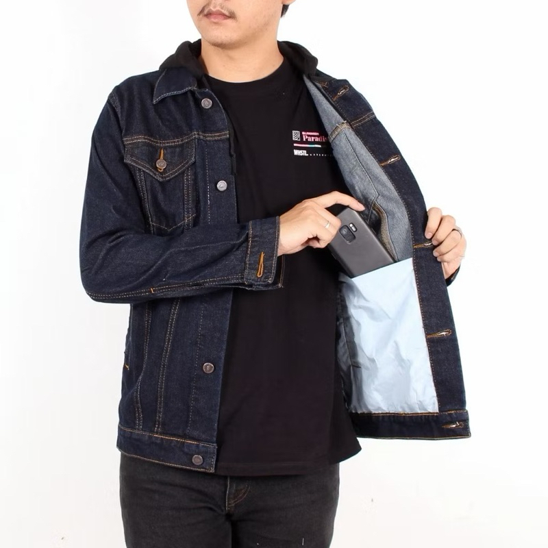 Jaket Jeans Oversize Bio Blitz Bio Wash Blue Black Hitam Bio Blue Bio Pudar