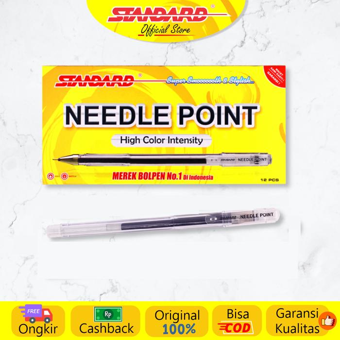 Standard - Pulpen Needle Point 0.5 ( Alat Tulis / Pen / Ballpoint / Pena ) - Tinta Hitam Isi 12 Pcs