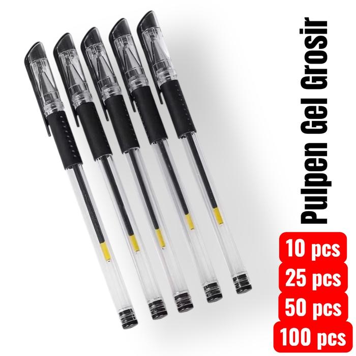 (FREE BUBBLE WRAP) Pulpen Ballpaint Gel Murah Grosiran Kualitas Bagus Terjamin isi 10 25 50 dan 100 Pcs - HITAM-10PCS