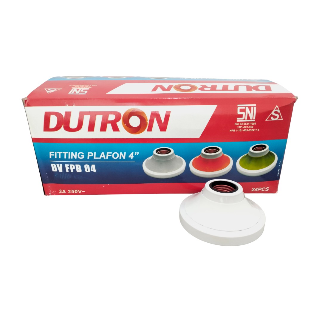 Fitting Plafon Bulat 4" 4 Inch Dutron Putih DV FPB 04 W Fitting Lampu E27 Atap Pin Kuningan SNI