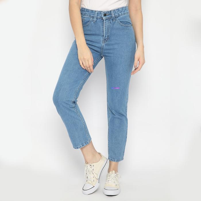 Nuber Boyfriend Highwaist Celana Panjang Jeans Wanita Fireweed Hitam Biru Navy - Blue Cream, 28