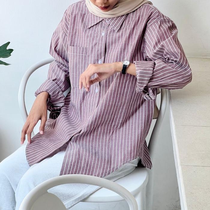 Fukutani Kemeja Salur Oversize - P1077 - Biru., L