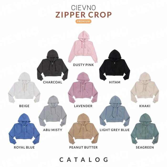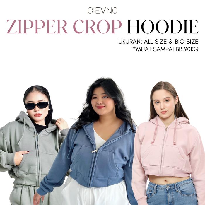 Cievno Hoodie Zipper Crop Premium All Size & Big Size Xl Wanita Sweater Top Oversize Outer Panjang Fleece Tebal Topi Bas