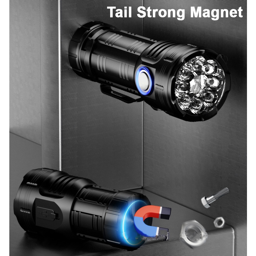 Senter Coba F82 8Xled P35 Super Terang Magnet Type-C Rechargeable Waterproof