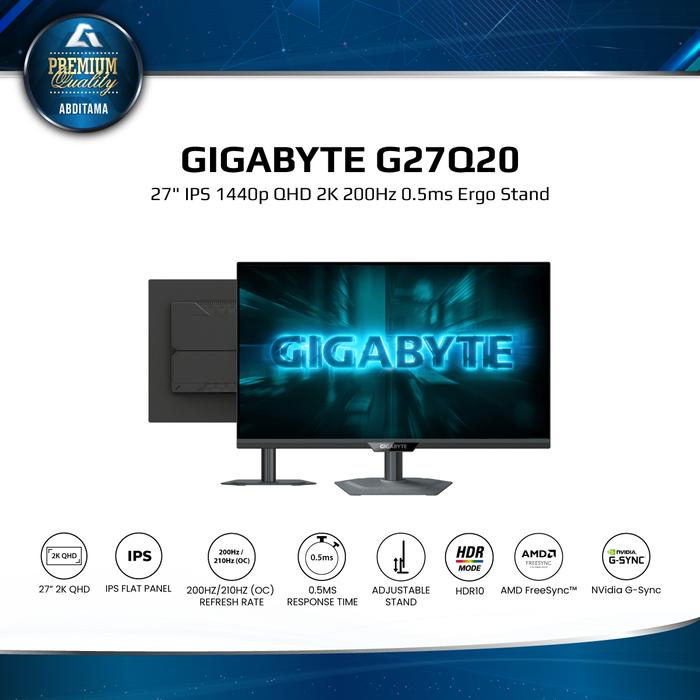 MONITOR LED GIGABYTE G27Q20 27" IPS 1440P QHD 2K 200HZ 0.5MS HDR10 94 PERSEN DCI-P3 123 PERSEN SRGB HDMI 2.0X2 DP 1.4X1 ERGONOMIC ST