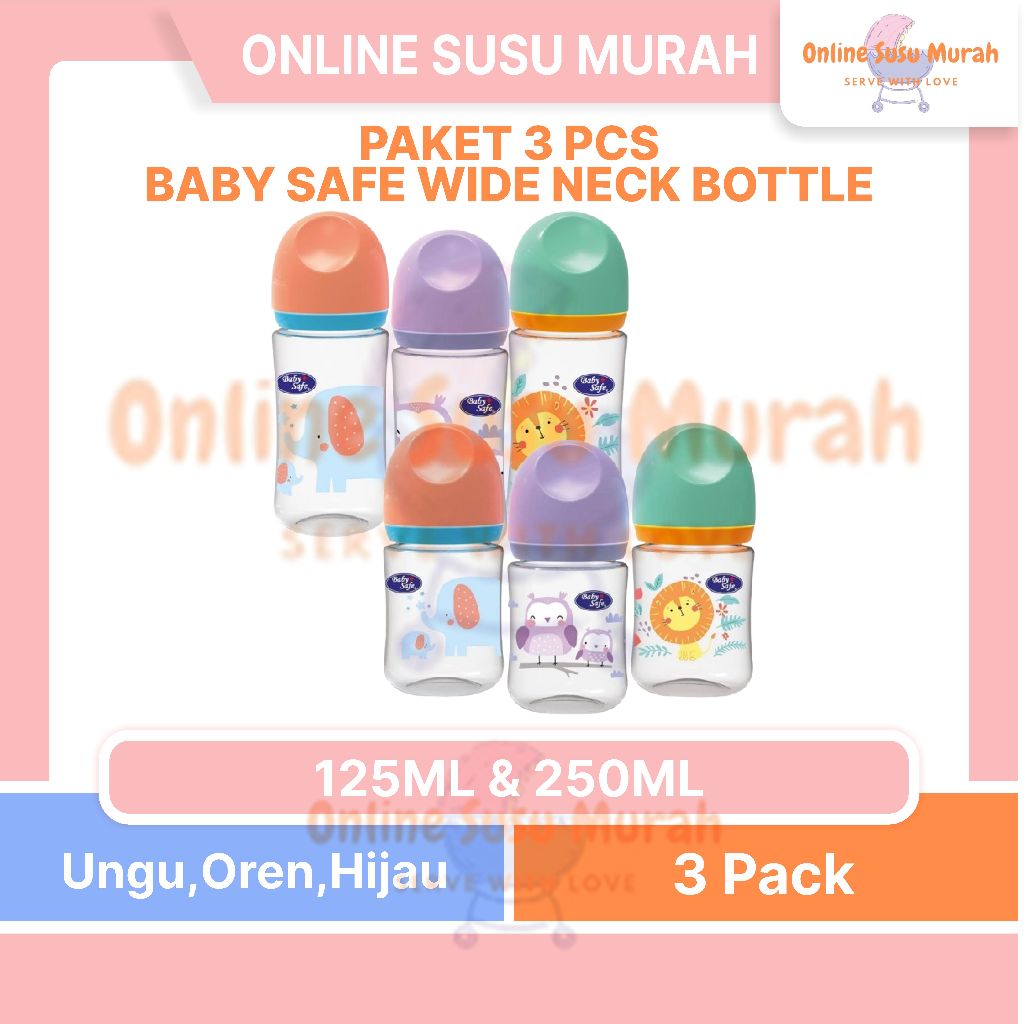 BABYSAFE PAKET 3 PCS MILK FLOW SYSTEM WIDE NECK BOTTLE 125ML & 250ML BOTOL SUSU BAYI BABY SAFE PRLA