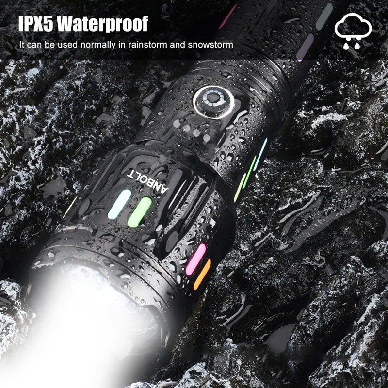 Anbolt A18 Senter 100K Lumens | Super Zoom 1000M 5 Mode Tactical (Strong/Strobe/Sos) & Waterproof Ipx6 - Hadiah Dar