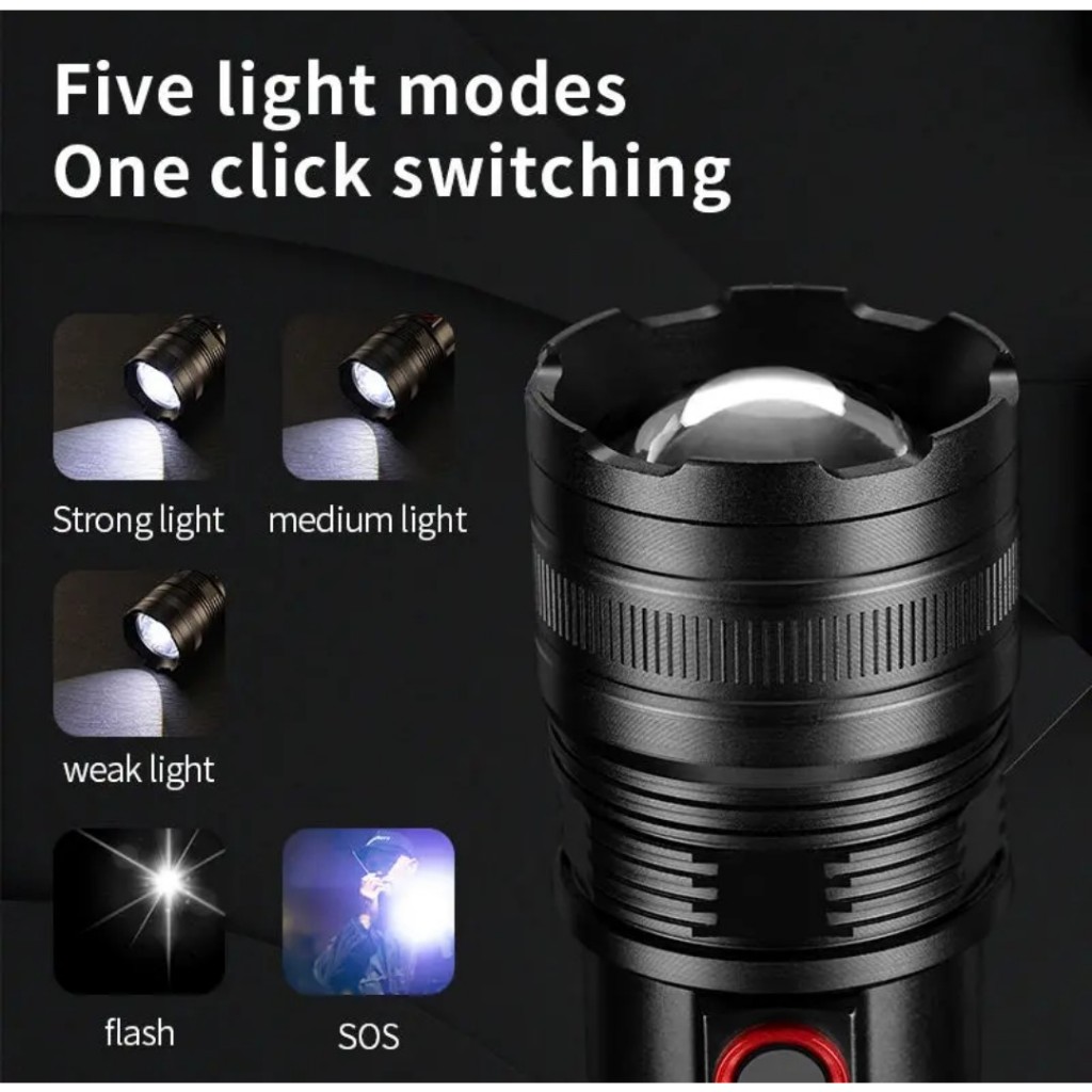 Senter Led Zoom Super Terang Flashlight Multifungsi Premium Import Mxb702