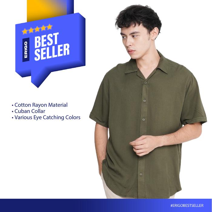 Erigo Short Shirt Othieno Army - Kemeja Lengan Pendek Rayon Unisex - M