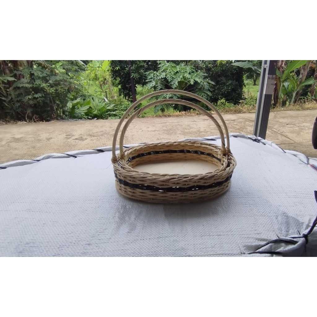 Keranjang Rotan Parcel Anyaman Motif Bulat Oval Sttrip Baki Seserahan Lamaran Pernikahan Kranjang Buah Serbaguan Terlaris