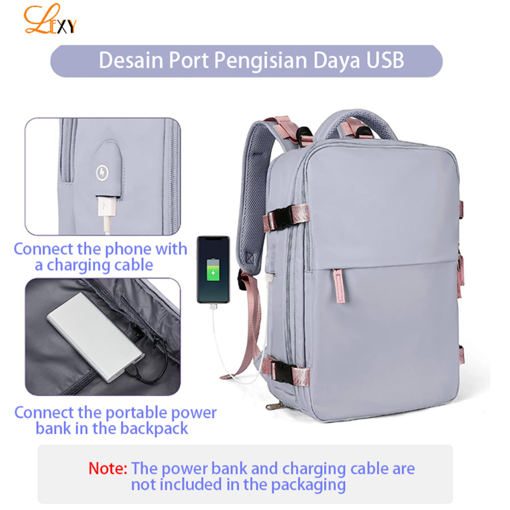 Lexy Tas Ransel Traveling Wanita Tahan Air Kapasitas Besar Outdoors Multifungs Tas Sekolah Wanita