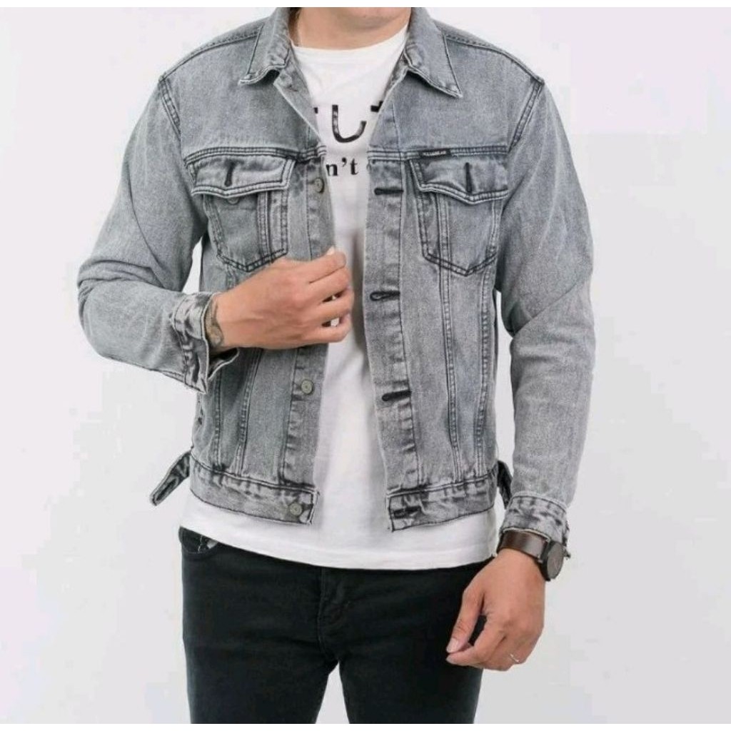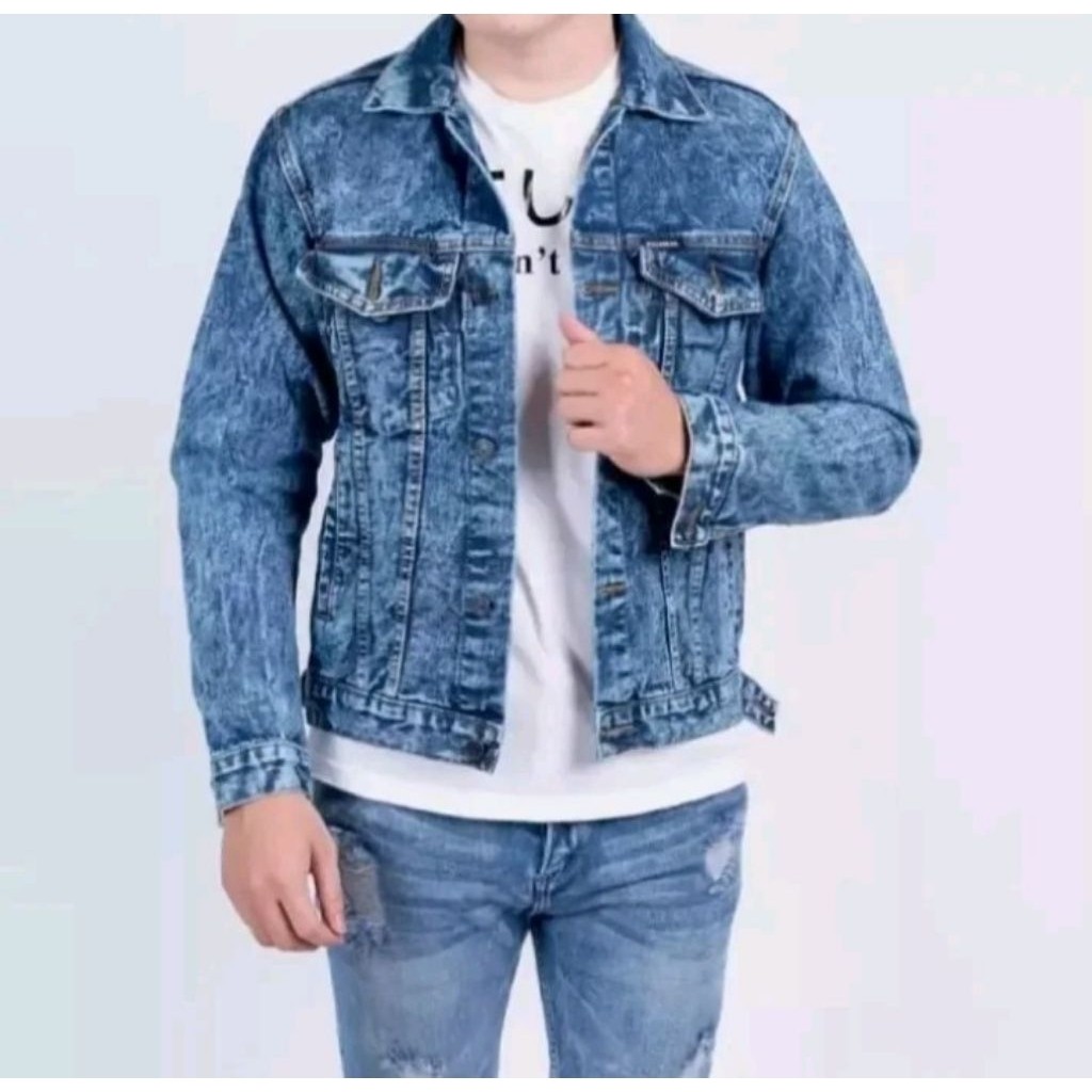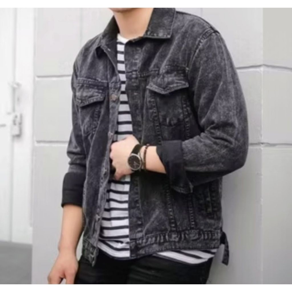 PUSATNYA Jaket Jeans Denim Pria Dewasa Sanwash Jaket Denim Pria SnowBlack M L XL XXL 3XL Jumbo Terlaris