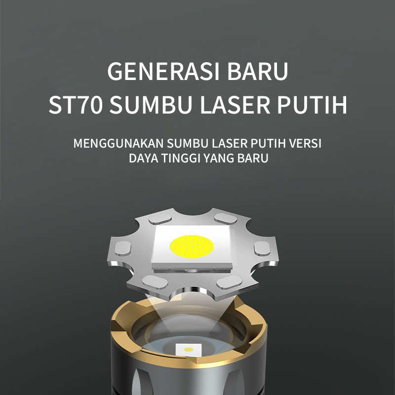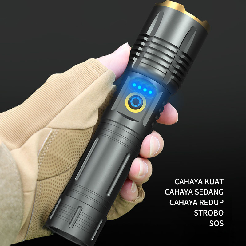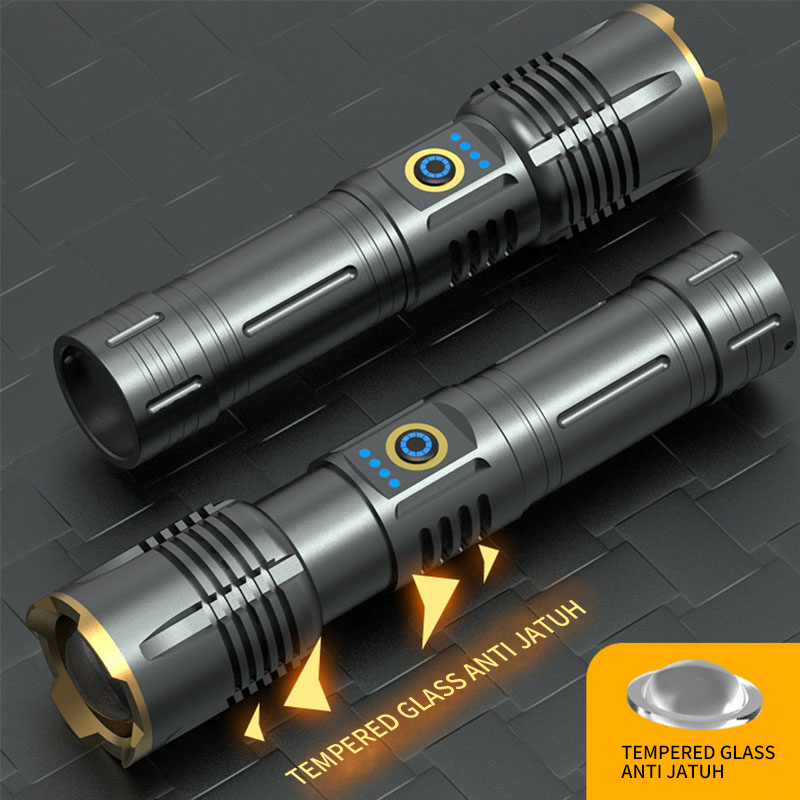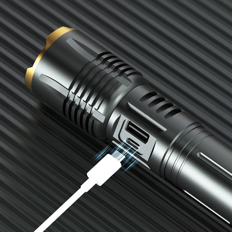 Senter Led 3000 Lumens Original Usb C Type-C Rechargeable Zoom Flashlight With