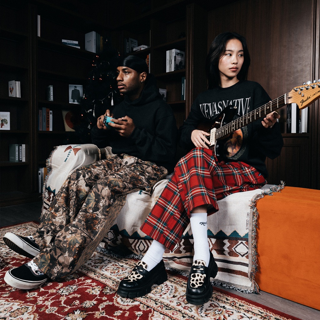 Kevas Steward Plaid Fleece Loose Pants