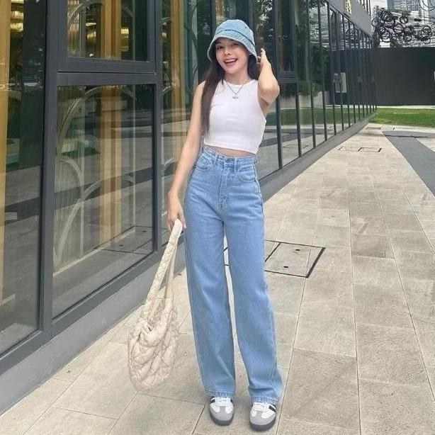 La.St Unisex Baggy Jeans Celana Jeans Wanita Oversize Gombrong Loose Korean Styl Bahan Denim Tebal Nyaman Model Straight