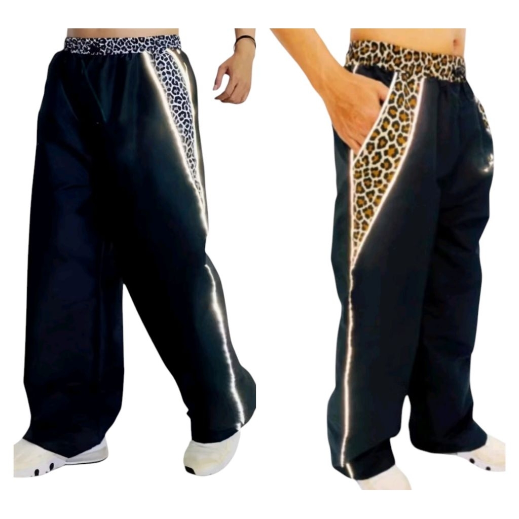 Celana Dewasa Skena Baggy Pants Vintage Parasut Kombinasi Leopard Reflektif Plat Menyala