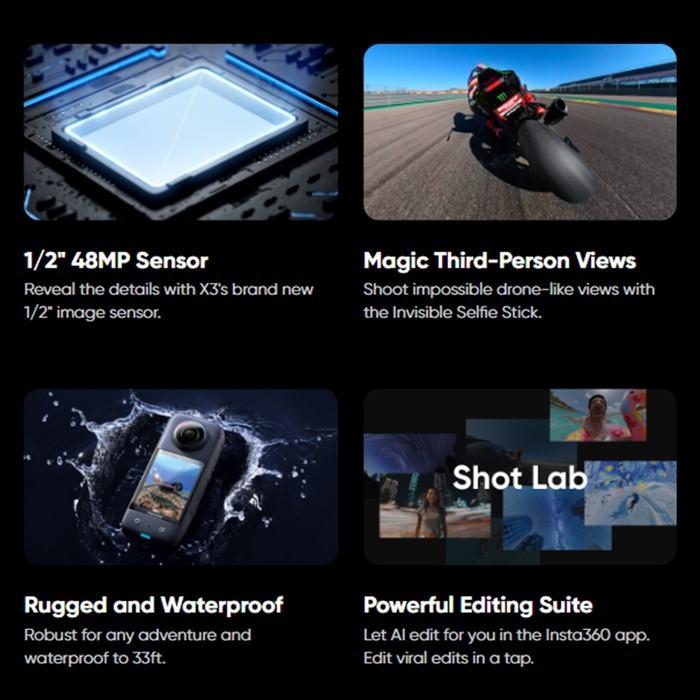 INSTA360 X3 ACTION CAM PAKET BUNDLING MOTORCYCLE KIT - X3 STANDALONE
