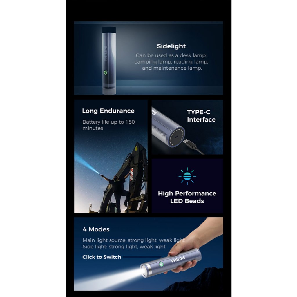 Philips Sfl1188/56 Senter Rechargeable Flashlight With Ambient Night Light Blue Lampu Tidur - - Hiking Mountain Camping