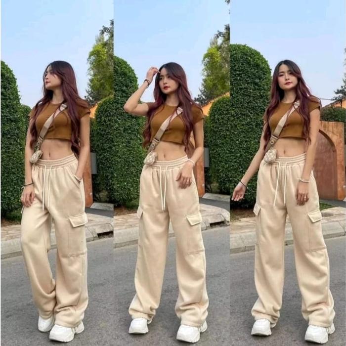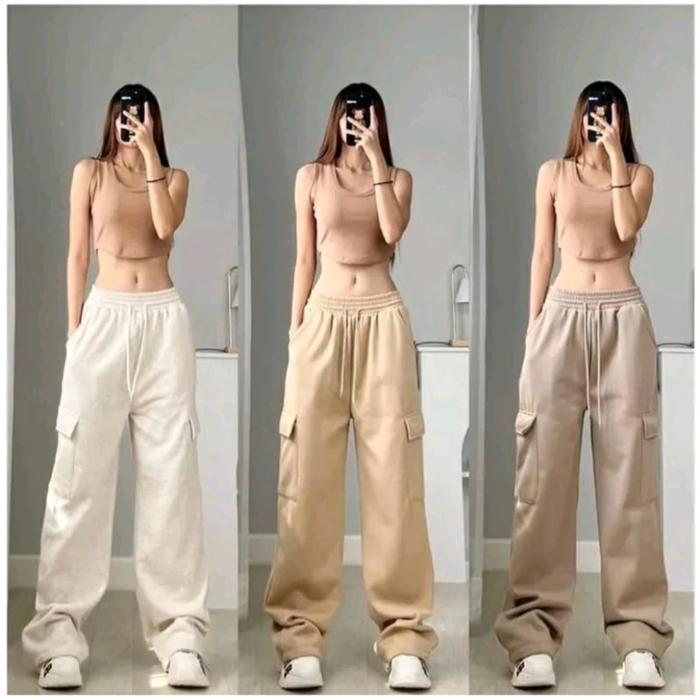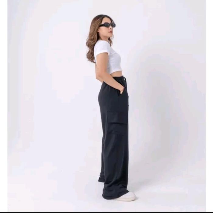 Celana Jogger Jooy Sweetpants Celana Cargo Panjang Wanita - Hitam, All Size