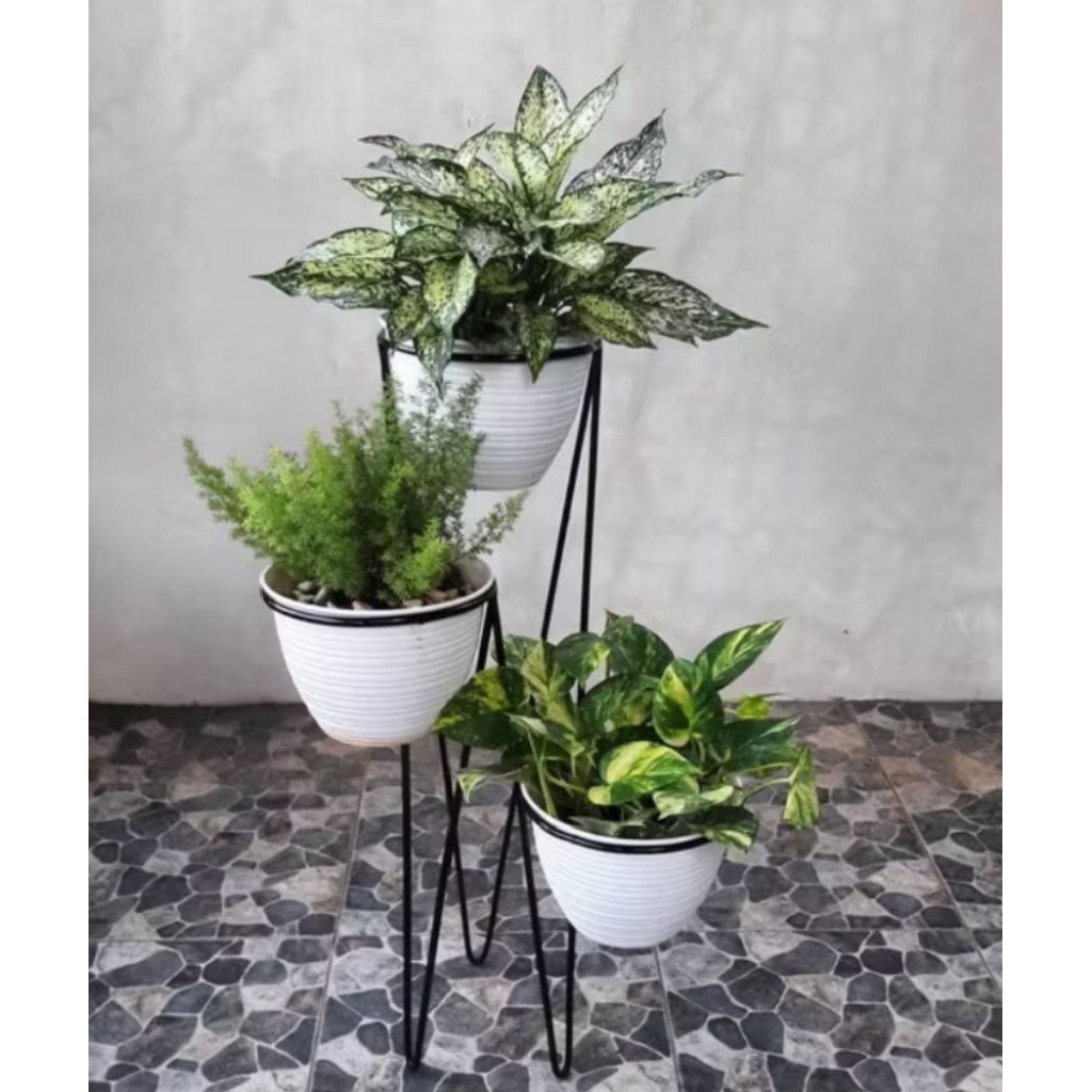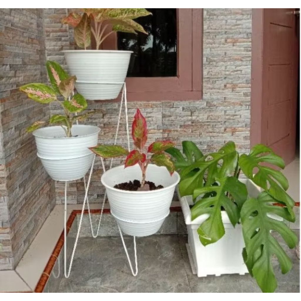 Tinggi 50Cm/Dudukan Rak Pot Bunga 3 Lobang/Alas Rak Tanaman Lobang 3/Rak Tempat Tanaman Lobang 3 Khusus Outdoor dan