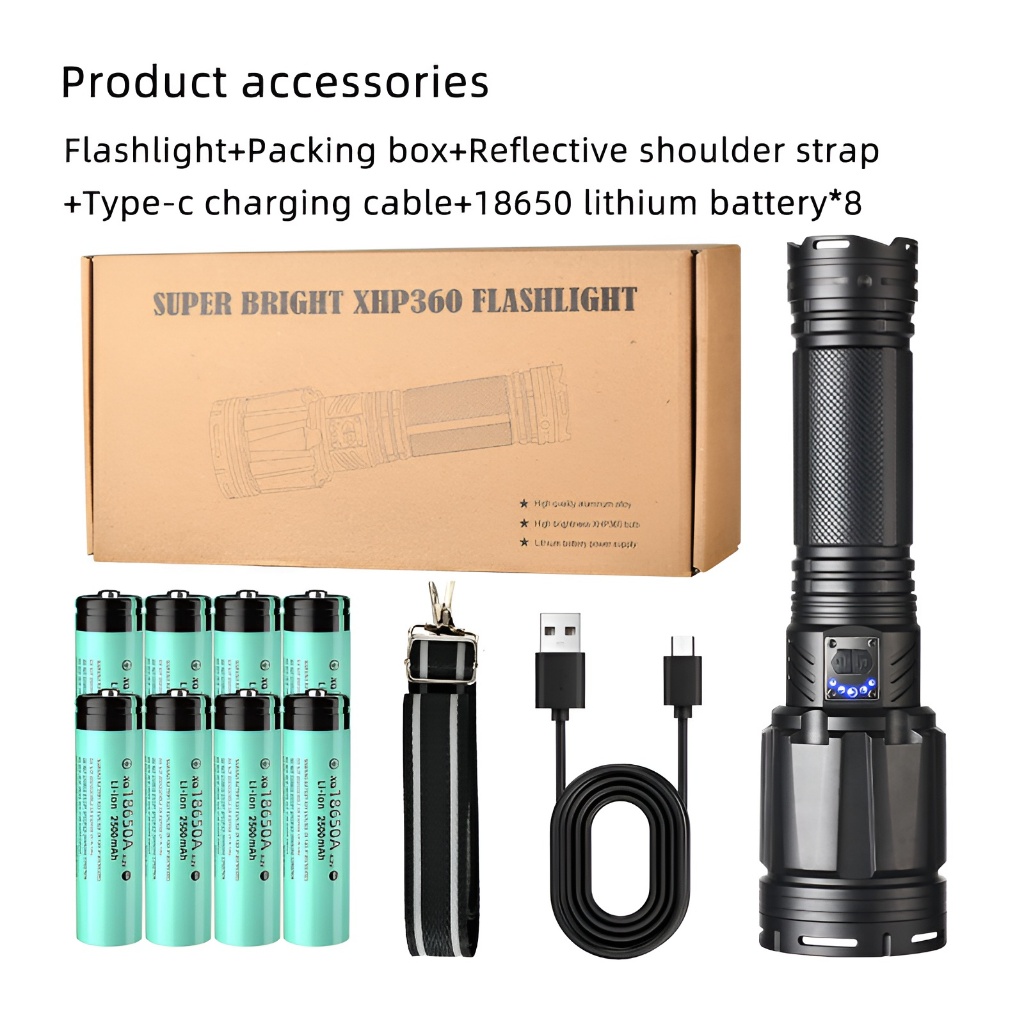 H2S Senter G999 Led Xhp360 Powerful 150W 24000Mah Zoom In Out Hs-G999