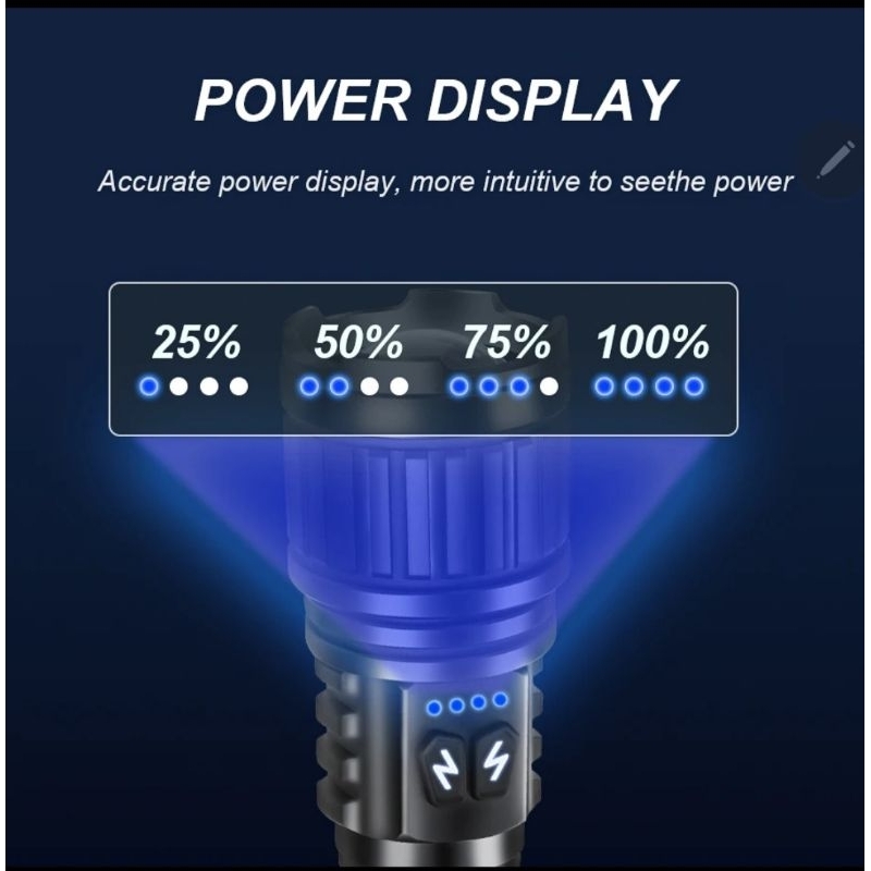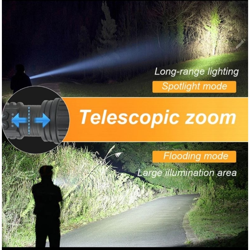 Senter Ms007 Led Laser 2 Cahaya Kuning & Putih - Zoom Sorot Jauh - Charger Type C Powerbank
