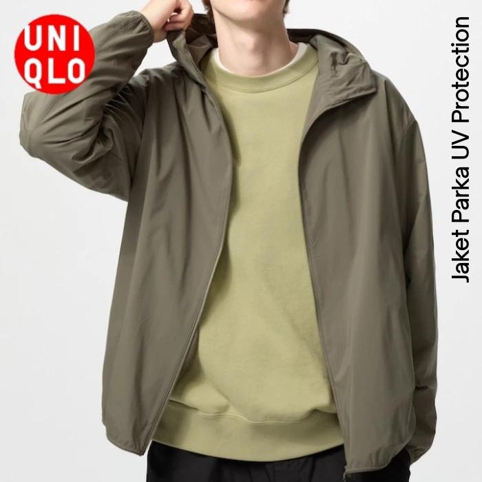 Uniqlo Jaket Parka Saku Proteksi Sinar Uv Water Repellent Jastip Original - Hitam, S