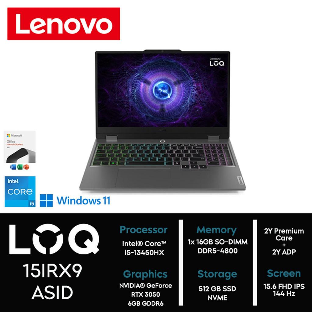 LENOVO Gaming LOQ 15IRX9 Intel Core i5-13450HX RAM 16GB 512GB SSD RTX3050 6GB 15.6 FHD Win 11 Home +OHM 2024+M365 Luna Grey Garansi Resmi 83DV01ASID