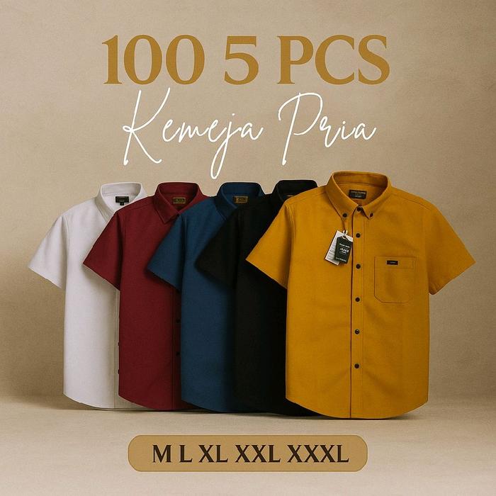 Promo Kemeja Dewasa 100.000 Ribu 5 Pcs Pendek Pria, Baju Distro Kain Katun Pria Cowok Navy Nyaman - Maroon Abu Hita