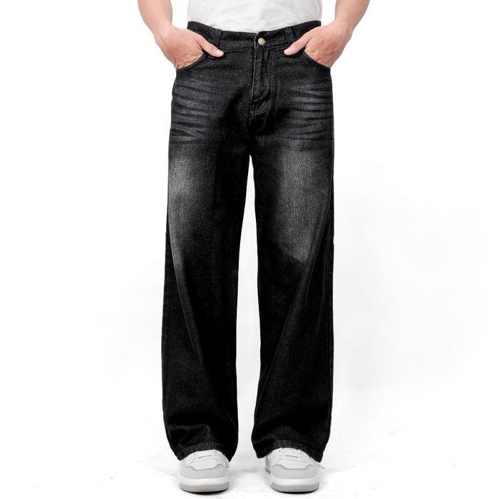 Wadarkum Loose Jeans Reguler Celana Jeans Panjang Pria Korean Baggy Oversize Vintage Gombrong Skena - Hitam Whoss, 22