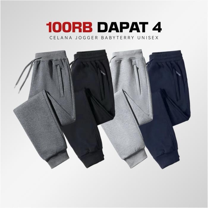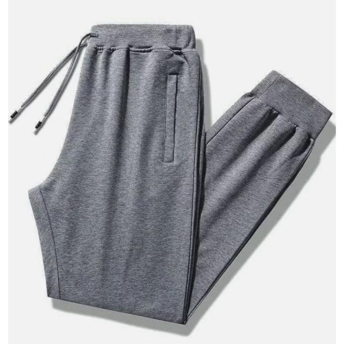 Celana Jogger Panjang Olahraga Keren Kasual Pria & Wanita Katun Santai - 3 Pcs (Hitam, Abu Muda, Abu Tua), M (Bb 30-40Kg